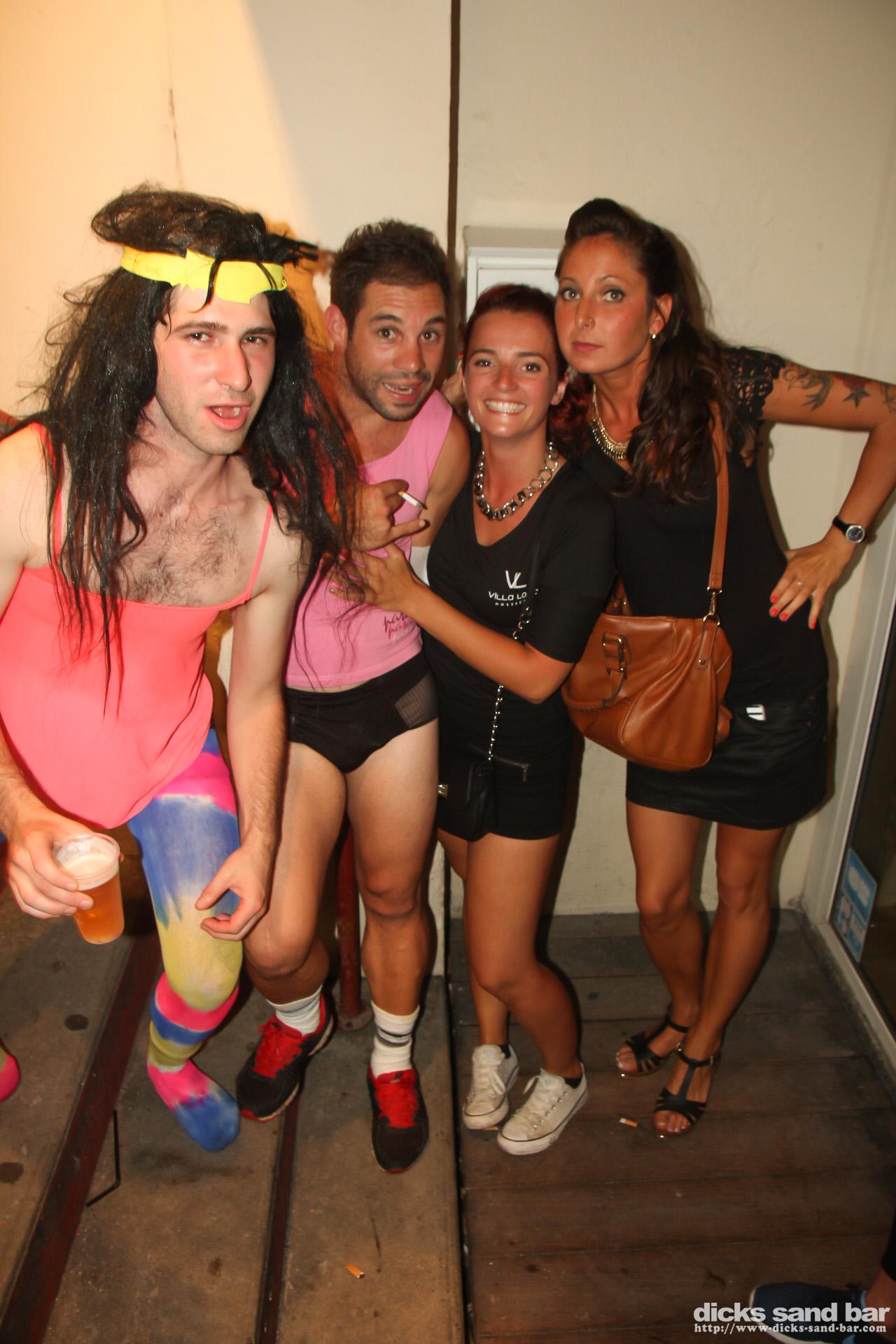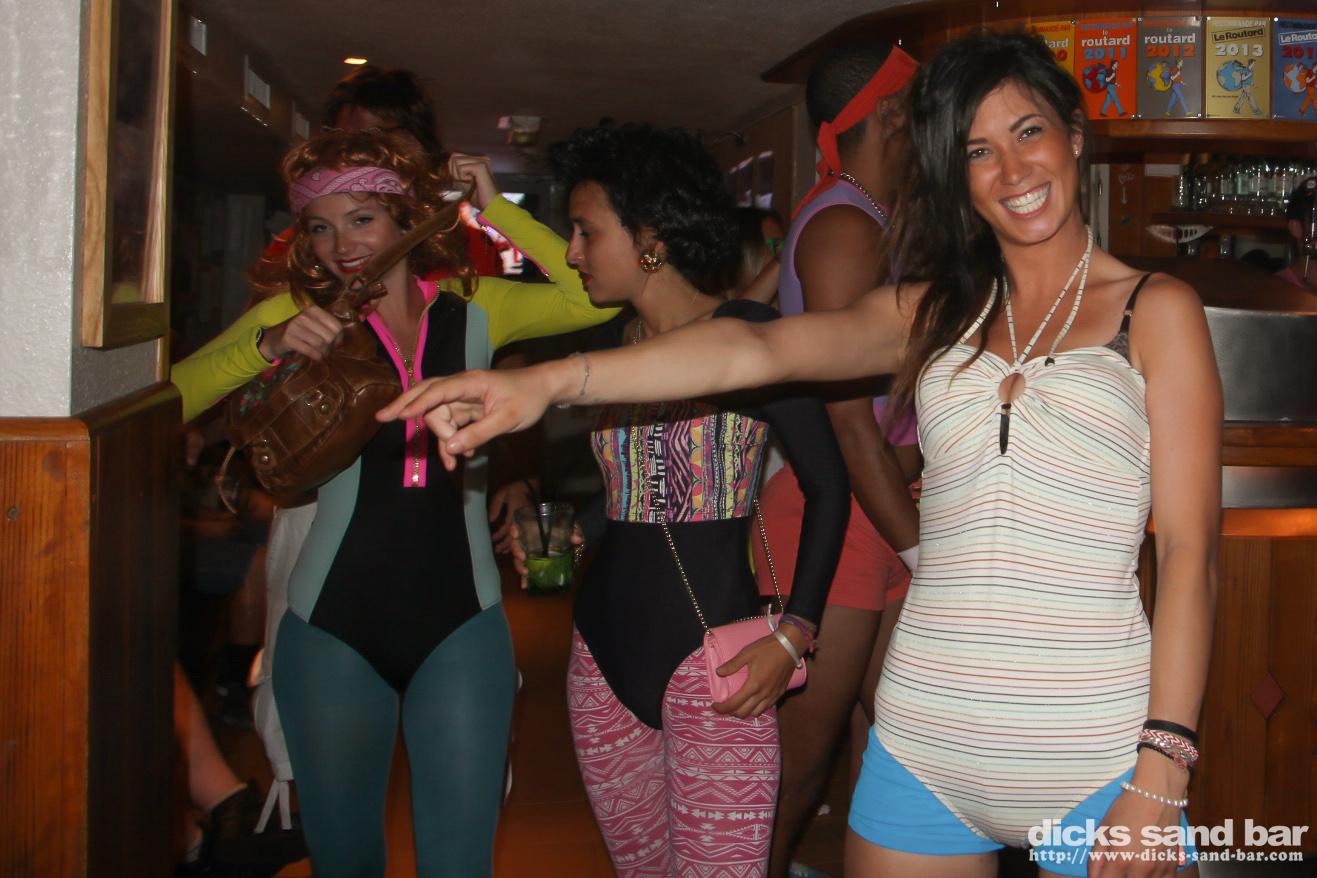 Dimitri goes back to his roots: see though underwear & womens workouts, Juliette porte des bottes de cowboy pour faire du sport, Tasha & sister show Hossegor how Val d'Isere does laybacks, Fab reste plus ou moins habiller pour tout la soiree (!!), JJ on fire, Lorena livin la vida loca, bad 80's music & good times, encore un super soiree deguisee au Dick's!
