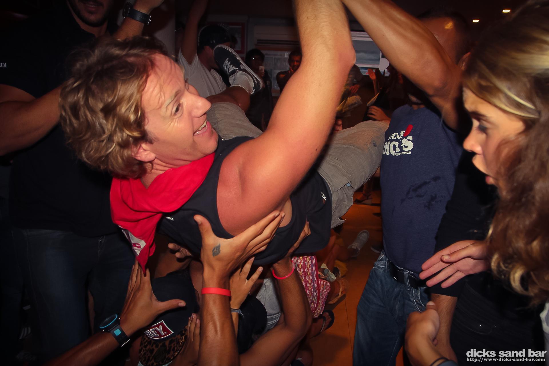 Dimanche / Sunday 18 August 2013...Mega apero avec les equipes Beach Volley de DsB, Etiquette & Les Penguoins du Lac avec Guillaume Gee en concert et Leo qui danse rock avec Xavier & Fab, Delphine Kdo & les beautiful Labenne people, then we did the WORLDS BIGGEST MACARENA, with Clem leading the thousands that were doing the thing, and Butterface was hustlin', Kate's birthday and it got messy with eth Princess girls (again), and we finished with a Paquito which was quite rude, then 16 & Lucie's ugly twins came in...photos: David Potter & Kene O // Contact: dave@dicks-sand-bar.com