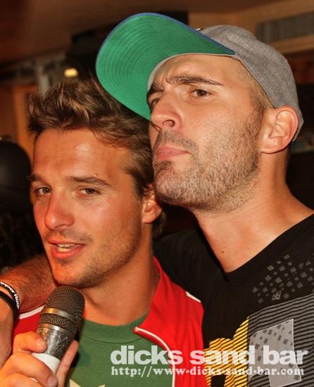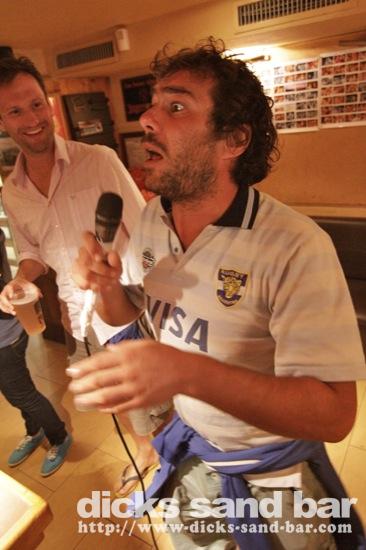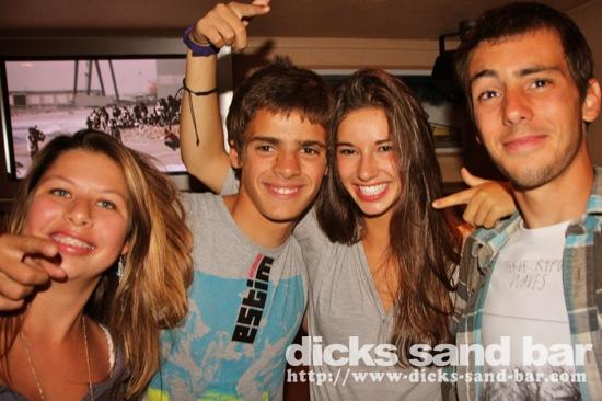 Dim / Sun 2 Sept 2012 Latino 3... Santa Cruz Bodysurfers Josh & Tom back in town and ready to get wet, Antoine anniversaire donc shakers sur les oreilles, Bibbin's Stag weekend continues Hossegor style with Mark Hiseman & the boys getting messy with big Jaque and his little buddy, Kats & Emi party with Momo dehors dans notre Bodeguitas Bar, Manon Margaux & Carla Clara look like Sandy at the end of Grease when they sing 'Youre the one that i want', Greg & Kris karaoke disaster, Jaja has a hairy ass, and Tomas had a bucket on his head to protect him from the incessant salsa music........photos: David, Kene, Romain // Contact: dave@dicks-sand-com