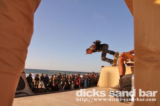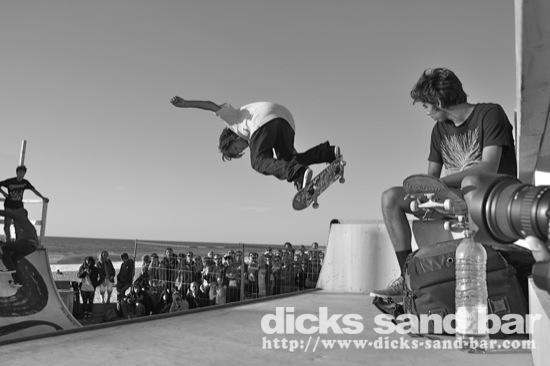 Dim / Sun 30 Sept 2012 DC Skate show...The feeling in town so far this year for the QuiK pRO Comp has been kind of anticlimatic....as in Septembers past theyve had huge mega concerts and Tony Hawk shows and dudes on motorbikes etc, but this year the concert was in Bayonne (??) and they've built a mini ramp on the square where there are daily skate sessions from 17h-19h.This Sunday the sun was out and the surf was small so everyone cruised down to the square to watch the guys do their thing...and Reva took some photos ...photos: Reva Skrillex // Contact: dave@dicks-sand-com