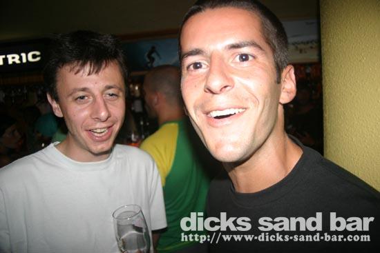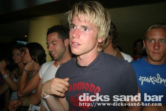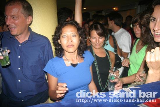 Vendredi / Friday 15 July 2005....Like salmon fighting their way up stream in an irresistable call of nature,so do the beautiful people of Hossegor strive to party in Dicks Sand Bar! (please feel free to email me new suggestions of things to write here!)