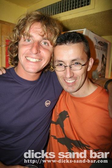 Vendredi / Fri 17 Aug 07; Luke Munro & Kirk Flintoff popped in to DsB as pro surfers arrive for the Rip Curl Pro.Also there were these pretty Swedish ladies everywhere lighting up the bar.....tak! DsB the place to be summer 2007!!