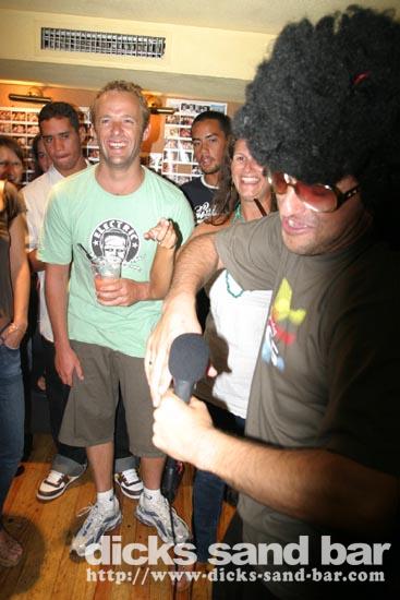 Friday / Vendredi 4 Aout 06 ..With the Fete De Bayonne in full swing i thought we'd be quiet,but somebody forgot to tell the customers as we were crazy busy as usual,and Elvis Howey got the joint rockin singing about White DC's & doin the Dicks Bar Rock!