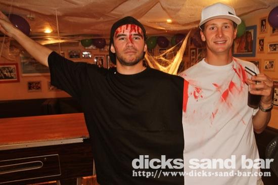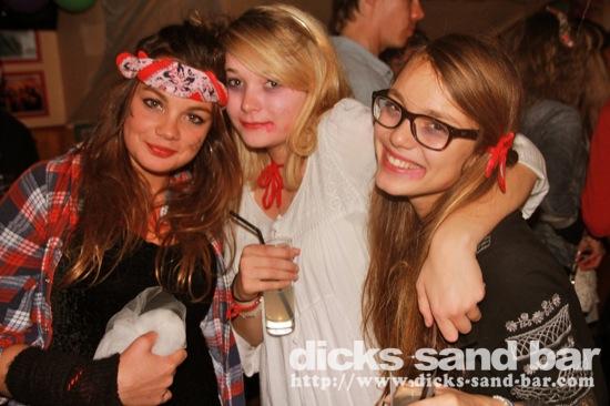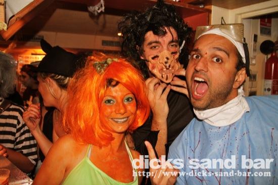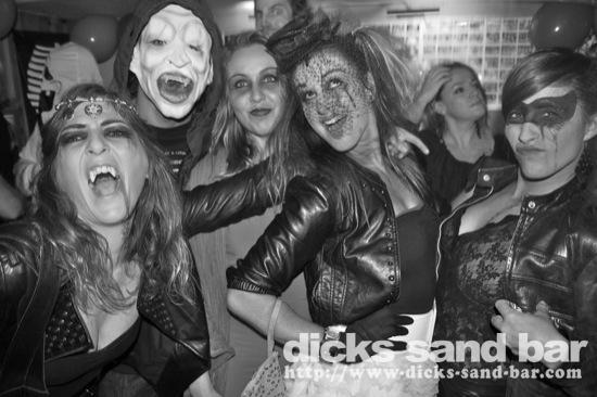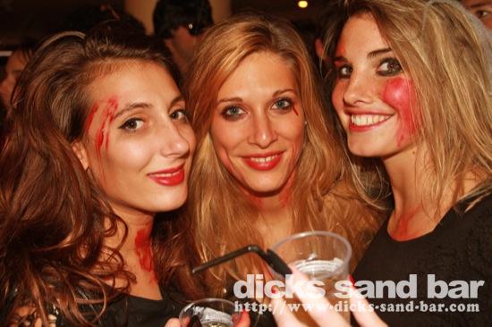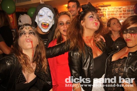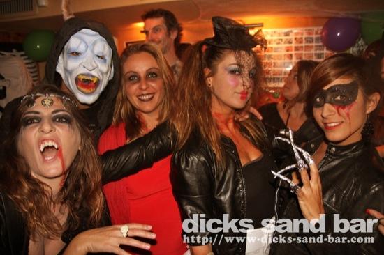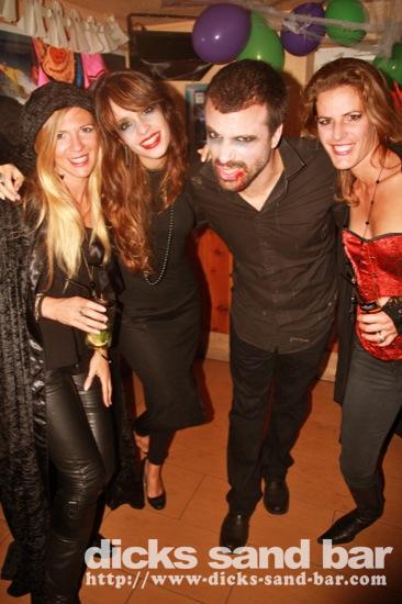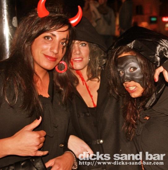 HALLOWEEN Lundi 31 Oct 2011....Chaque annee vous nous surprenez avec votre enthousiasme et vos costumes magnifiques! Encore une superbe soiree Halloween avec plein de gens qui faisaient trop peur! Ils sont venu de Montauban, Toulouse, Bordeaux, Paris pour lancer le feu avec les locaux....les sorcieres & diables partout, il y avait un psychopathe avec sa tronconeuse, Les Playboy bunnies avec Hugh Hefner, Remy & Sylvain etait tres intimes, Max Hugo et al Harry Potter style, Dick a tourné partout filmé et cette semaine Dan va vous faire une autre superbe video montage, Anniv Alex Belge qui faisait tres peur avec Jerome le Demon, Thierry & son frère se deguisaient ensemble pour la premier fois depuis on a ouvert le bar!Merci les gars!!! Caroline B & ses copines avec l'accent Montauban, Baptiste Tactique Gendarme, Amelie S - Melissa- Maud Danatia Marie Michael Jackson super mignonne phantoms, Vincent Ghostrider, Nick & Buckle looked good as usual with special mention going to Nicks devil makeup! MERCI ENCORE POUR VOS DEGUISEMENTS - TROP FORT BRAVO!!! ..photos: Dr Dan & Adolf Potter... // Contact: dave@dicks-sand-bar.com