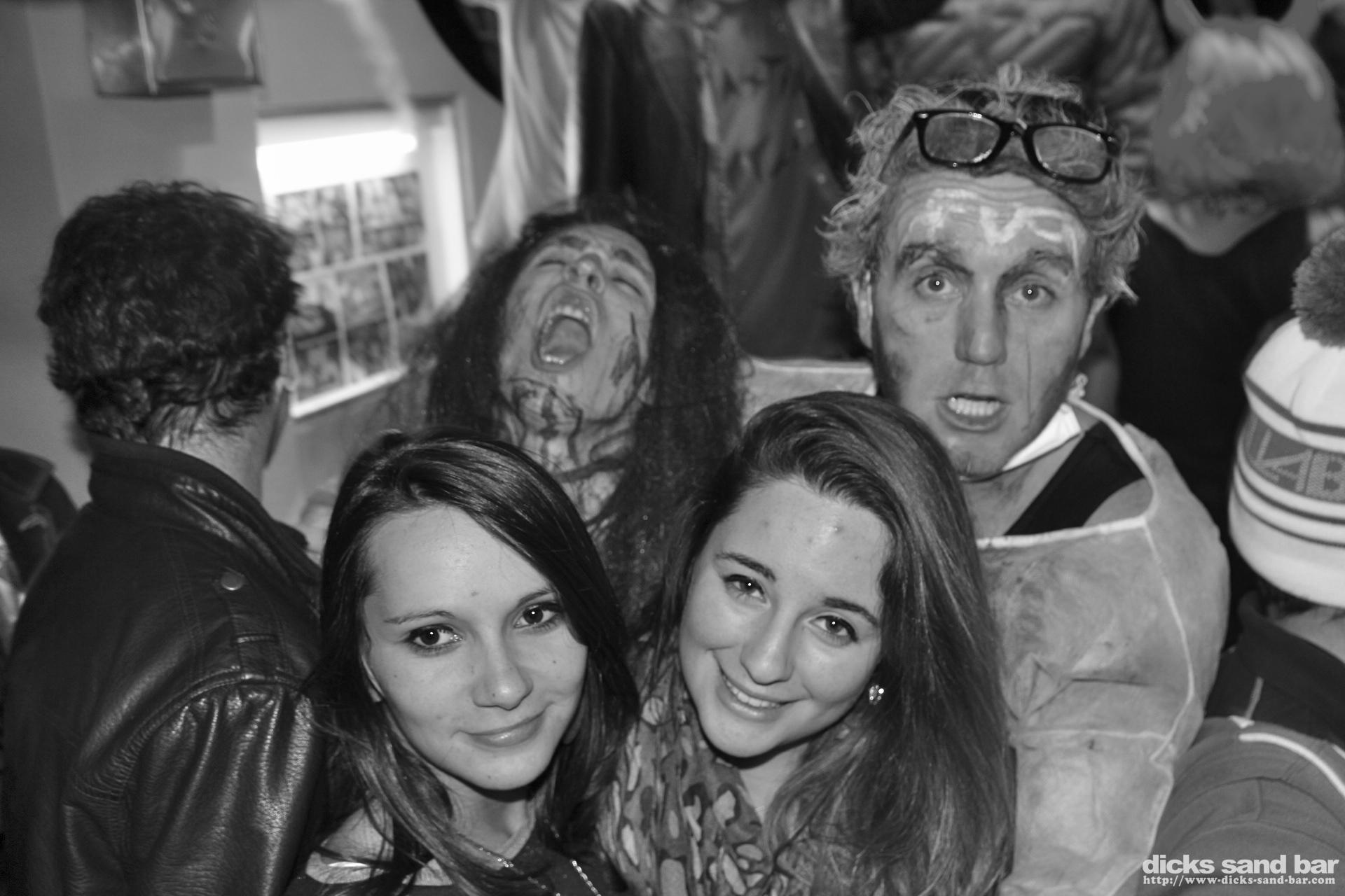 Jeudi / Thursday 31 Oct 2013 Halloween Pt 2....Bravo a tous pour les deguisements extremement choque!,Max Chris & Hugo Mami's Morte, Princess crew Exorcists plus Zumba Jesus, Justine Sexual & pretty Chloe avec Elodie & Lea bcoup shooters, Nick Pump annual visit, Anne Laure beautiful mais pas de costume, ...vous etes les grandes malades ....photos: David Potter & Dan the Diss// Contact: dave@dicks-sand-bar.com
