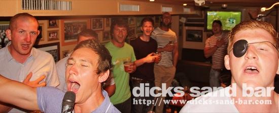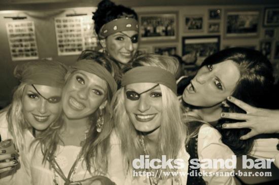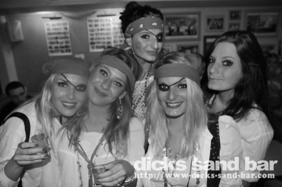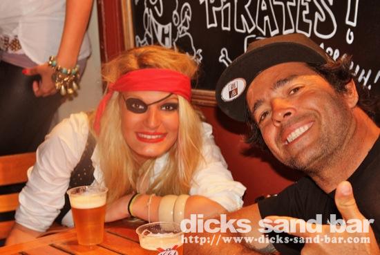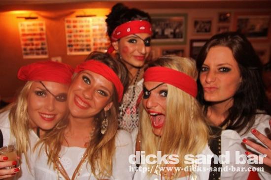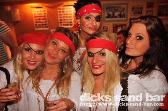 Jeudi Thurs 7 Juin 2012 PirATeS PaRTy!!!...Captain Jack Sparrows partout et les filles s'habilléé mega chic a le look Pirate! Crawshays Rugby Team (Pays Galle) pop in to say hello and scare the local chicks with their massive biceps. It was HardcORE; Melissa has a bust leg but Charlotte and their german girlfriend took good care of her, les Sisters Lauren & Chacha et ses copines ultra super pirate girls ..photos: David P Kene Dan Dys etc etc // Contact: dave@dicks-sand-com