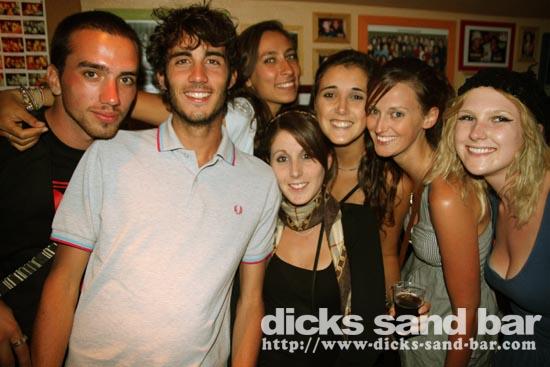 Mardi / Tues 3 Aout 2010... Laure & the "greek dance" girls are back and get things started, then Nico au micro singing Joe Le Taxi, again millions of "Toulousains" in the bar going crazy... pretty chicks everywhere, Fanny & les filles and Aurelias emotional goodbye (see you in 3 wks), cute tall Aussie chicks, Hugo & the boys shooter kings..... Dicks Sand Bar is now at full alert....Summer is well and truly on!