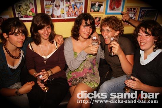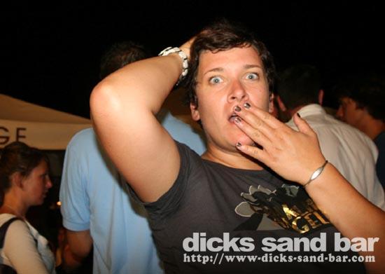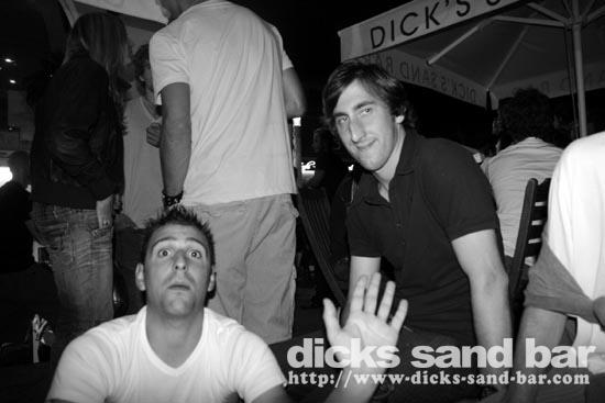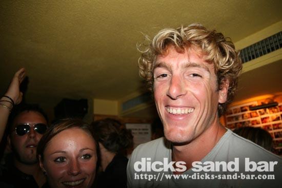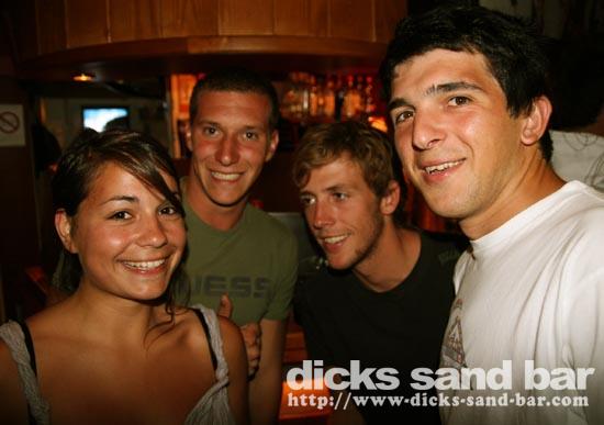 Lundi / Mon 4 Aug 08...Streuth!The busiest Monday night ever!Beautiful sunset,then wall to wall party on the square.Du monde partout et la folie au DsB...Clem & Christelle au shooters,et l'equipe de RipCurl eu feu!!!Mardi soir SUPERHERO PARTY!