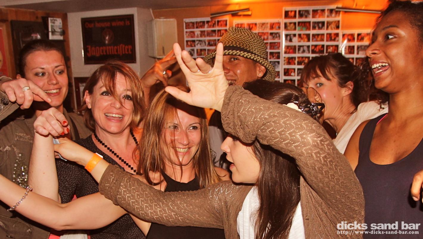 Sam / Sat 13 Avril 2013...Mega beau soleil et belles vagues continue, donc ouvert pour l'apero avec Mojitos a €4 & biere a €2!! Pascale Marie & Sophie always look chic, carzy Spanish ladies drink red wine & coke (?!!), Little Princess Flomiroquai & Iron Man & l'equipe, Les Sophies & Sylvie & les Dancing Girls rocked up and set the place on fire, les Tosse Sisters sont super gentile ...photos: David Potter & Dan // Contact: dave@dicks-sand-com