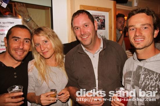 Samedi / Saturday 1 Oct 2011... Mega beau temps, puis mega soiree au bar, avec dernier soir a Hossegor pour Manu Martin (avant commencer a Toulouse) avec Max Lilian 'wanna gan to me fly' Bastos,Gaelle Jambes, Val Hugo Boss, Fred, anniv pour Laeticia (?) et les filles au micro completement folles, Roxanne & ses copines, Claire Buckle and her buddies and Nick sa cheri, Remy Thomas Twingo, Sylvain & Elodie, Rosé Girls (qui ne boir plus du rosé donc biere girls?),Pierro et son pote ourson, Estim Greg & son frere...merci a vous tous pour encore une super nuit d'oufff!! ....photos:Reva, Dan, David Potter... // Contact: dave@dicks-sand-bar.com