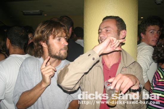 Samedi / Saturday 13 August 2005...Whew summertime and the living is easy! Dick & I have our weekly DSB board meeting on the beach, then rock hard with all the WQS pros in the bar and all the the locals going loco too, Dicks is rockin every night!