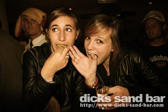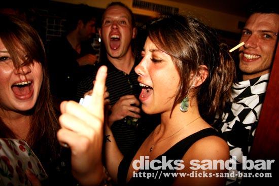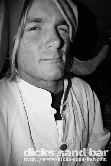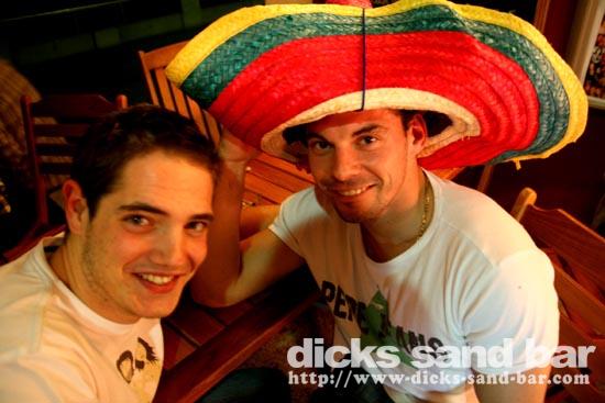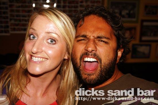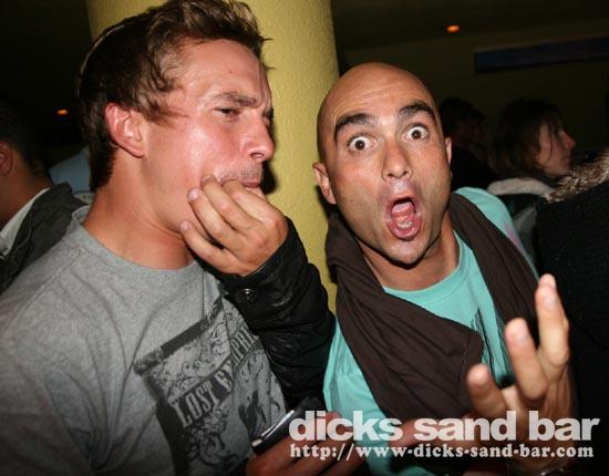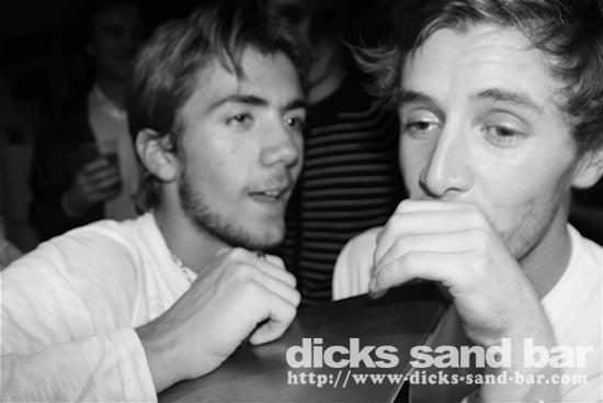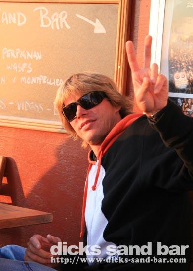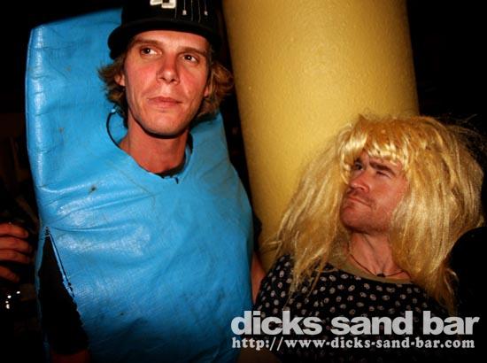 Sam/Sat 18 Oct 08..Beau temps et belles vagues.Laurie dressed as a surfboard?Why?Who cares!Jester Luke Short,Labenne Mexican,Swedish & German dudes,DJ Bert rockin the bar,Estim Pierre,James freestyle rappin,jolies filles plus bangin tunes=Dicks Sand Bar!