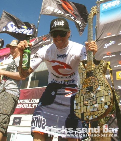 Sam/ Sat 23 August 08..Rip Curl Pro comp ends,congrats to winner Chris Davidson!Marlon Lipke in the bar with buddies celebrating his 3rd Place!...Lost Oliv was pimpin hawaiian style,beaucoup des Annivs ce soir & surtout beaucoup du monde!