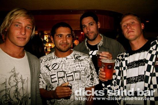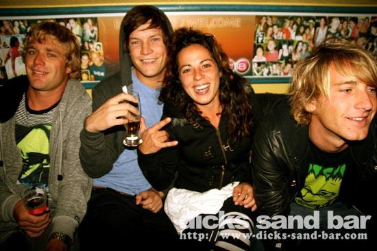 Sam/Sat 4 Oct 08...Amazing Sunset,then a Big Night!JC avec son equipe de Tyrosse,loads of Aussies,Germans & Brits,Toff & Ludo,a million Mojitos,Claire rockin Le Tigre,Mag,Amelie,Marie...en plus super surf!!!