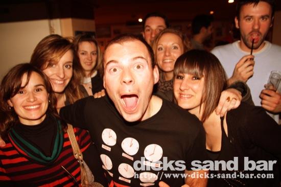 Sat / Sam 5 Mars 2011...Victoire en Espagne pour Bayonne v Toulouse, puis au bau Annivs pour Sylvain Marcel rum & coke, et Larissa et ses potes dancent la Chenille & Canards....Hossegor Rugby en force avec Pierre pied biche de retour en forme au micro avec dj Khaki...Sylvain Thomas Twingo & Remy vien pour les vacances, Gaelle legs & Laura chic-coupe & Alex starwars, Max Tof & Hugo cherche les sensations "extreme" apparament. Comme d'hab j'essaye de passer le bon son etc, mais par fois pour la fete il faut juste Gainsbourg et Patrick Sebastien...