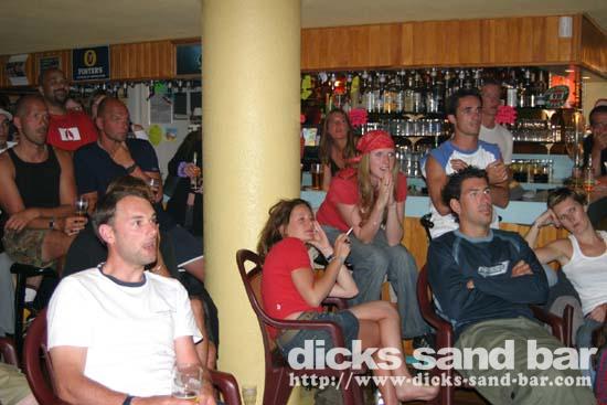 13 June - we were really full at 8.45 when we showed the England vs France football match on the plasma screens. We thought it would quieten down after the match, but it went ballistic. Much singing of national anthems and we ran out of beer!
