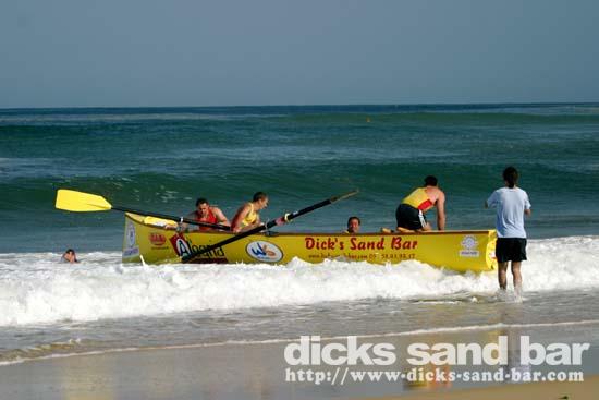 4 July -the surf boat was out in it's new colours and with our logo on it!!