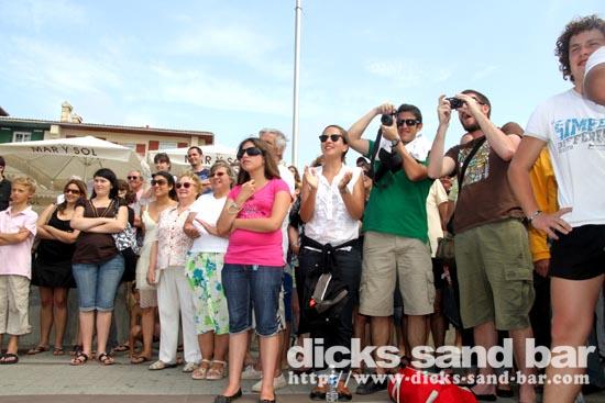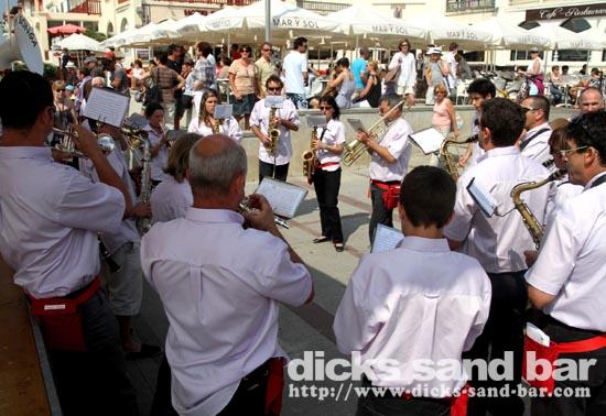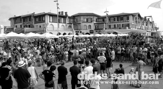 Roland is the boss of the RockFood Bar, and he organised this afternoon some fun stuff here on the square, all with a kind of SouthWest France / Basque vibe going on... so there were strong man farmer competitions (with chicks in bikinis!), some cute piglets running around each representing a bar on the square here, and this cool Basque brass band kickin ass.... it sounds wierd but it was good fun!