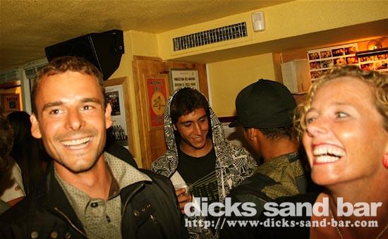 Jeud/Thurs 14 Aout 08..Like Jack Nicholson in The Shining,the bad weather outside had some wierd cabin fever effect!Everyone was crazy!Mr Landes cassé record shooters;Lost Oliv battu le record pichets(48?);Gabe & Lauren Davies partied for Beccas BDay!