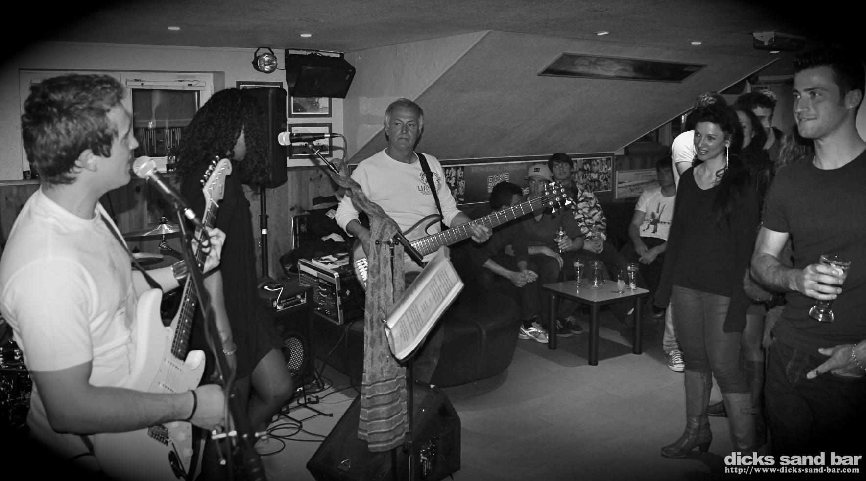 Vend / Fri 26 Avril 2013..L'equipe de Snapper passent nous voir Dimanche (Tomas manque le soleil...),Los Yes Papas en concert, Lulu & zee dansing girls like despés, Chloe & Ondine calins avec Pia, Little Princes Sandwichs staff know how to party ...photos: David Potter // Contact: dave@dicks-sand-com
