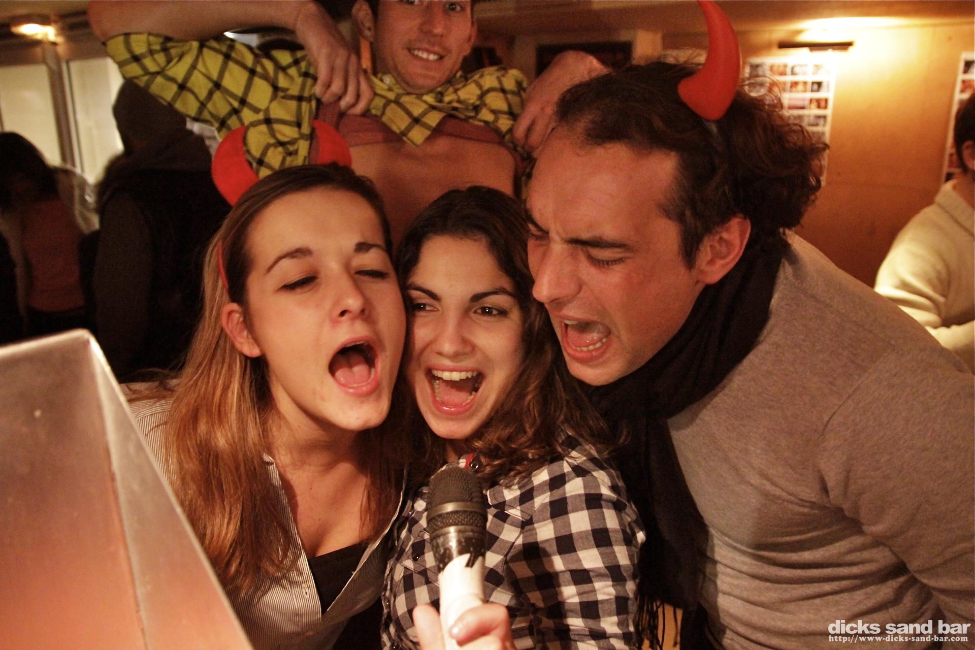 Vendredi / Fri 30 Nov 2012..Reva back in town, Betrand & Fred Condom & Rosie wear funny hats, Yele karaoke star, Virginie & Candice are very pretty .... photos: David P Juju & Tehina // Contact: dave@dicks-sand-com