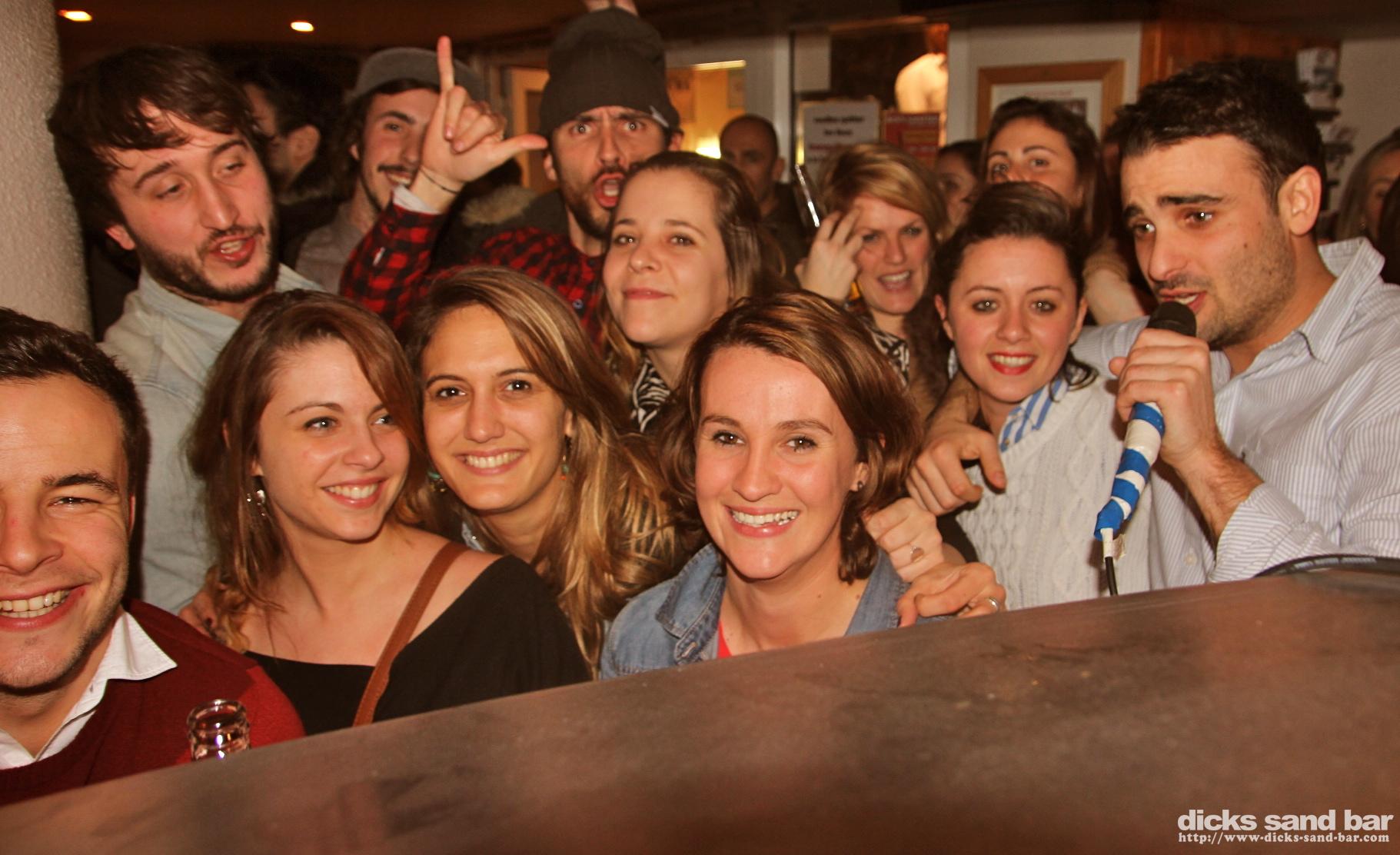 Vendredi / Friday 21 Fev 2014....Lola Lea & Ines are like prowling tigers, teh Toulouse posse back in late and going hard as ever (tonight theyre coming back...) for the anniv of Marie & Valou (karaoke master)...it was pretty mental at the end....photos: David P // Contact: dave@dicks-sand-bar.com