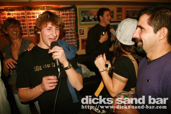 Sam / Sat 9 Janvier 2010...Neige sur la plage ce matin, mega froid mais quand meme sympa au bar ce soir, avec Capbreton Rugby qui a gagné, l'A.S.H en forme avec Jaja, Vic & Richard en tete de consumation (ils sont blessé donc ca va) Max Hugo Emilie (merci pour les photos!;) Laurence & the nice Finnish lady, Dan & his buddy got messed up AGAIN, Sylvain au micro bof mais quand meme enthusiaste mais Marine Sam Chic Aurelie Reignez etc au micro super fort! (mais cest juste une idee: arrivez avant 01H56) Bisous!