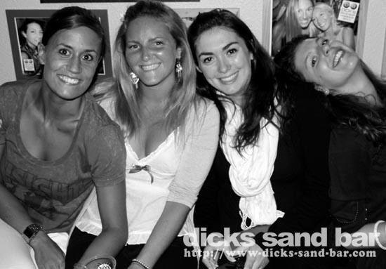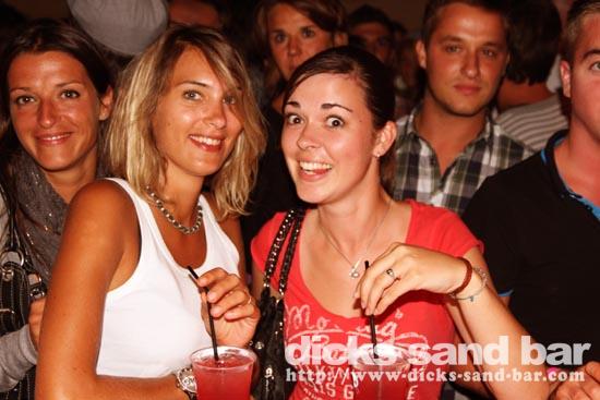 Mardi / Tues 3 Aout 2010... Laure & the "greek dance" girls are back and get things started, then Nico au micro singing Joe Le Taxi, again millions of "Toulousains" in the bar going crazy... pretty chicks everywhere, Fanny & les filles and Aurelias emotional goodbye (see you in 3 wks), cute tall Aussie chicks, Hugo & the boys shooter kings..... Dicks Sand Bar is now at full alert....Summer is well and truly on!