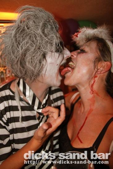 HALLOWEEN Lundi 31 Oct 2011....Chaque annee vous nous surprenez avec votre enthousiasme et vos costumes magnifiques! Encore une superbe soiree Halloween avec plein de gens qui faisaient trop peur! Ils sont venu de Montauban, Toulouse, Bordeaux, Paris pour lancer le feu avec les locaux....les sorcieres & diables partout, il y avait un psychopathe avec sa tronconeuse, Les Playboy bunnies avec Hugh Hefner, Remy & Sylvain etait tres intimes, Max Hugo et al Harry Potter style, Dick a tourné partout filmé et cette semaine Dan va vous faire une autre superbe video montage, Anniv Alex Belge qui faisait tres peur avec Jerome le Demon, Thierry & son frère se deguisaient ensemble pour la premier fois depuis on a ouvert le bar!Merci les gars!!! Caroline B & ses copines avec l'accent Montauban, Baptiste Tactique Gendarme, Amelie S - Melissa- Maud Danatia Marie Michael Jackson super mignonne phantoms, Vincent Ghostrider, Nick & Buckle looked good as usual with special mention going to Nicks devil makeup! MERCI ENCORE POUR VOS DEGUISEMENTS - TROP FORT BRAVO!!! ..photos: Dr Dan & Adolf Potter... // Contact: dave@dicks-sand-bar.com