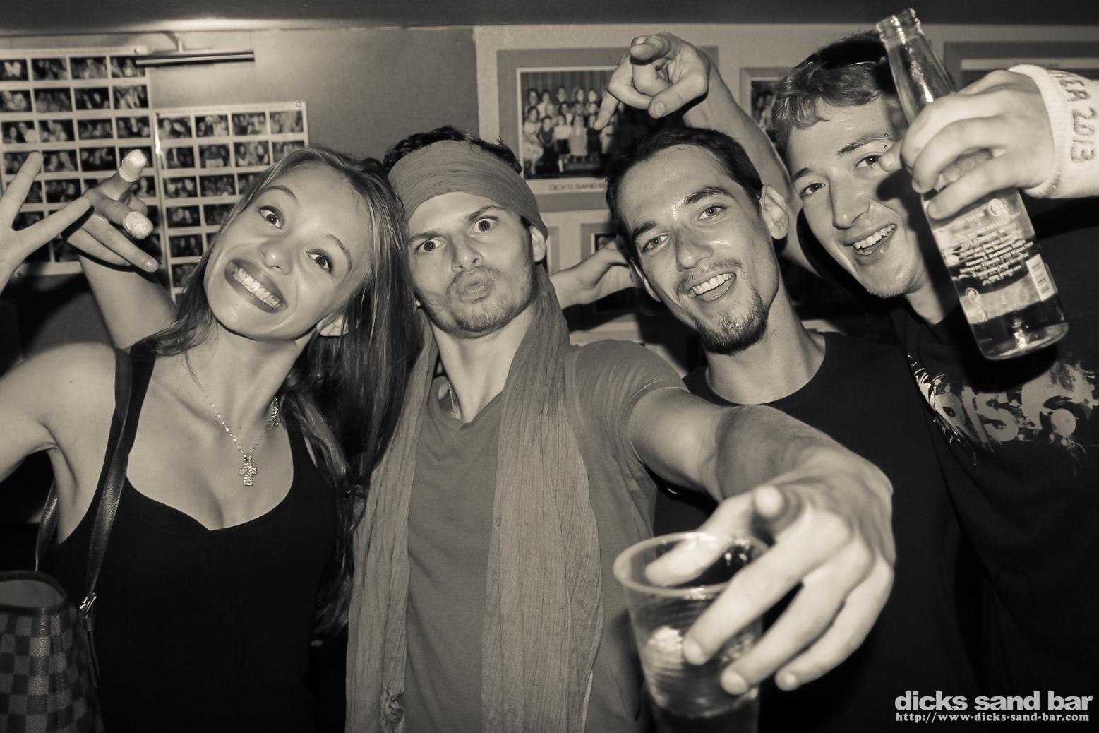 Jeudi / Thursday 11 Juillet 2013.....Everytime i think ahh tonight will be a bit quieter cos there's something happening elsewhere, we get hit harder than ever with queues out the door and people getting loose all over the place! Lillian wanna gets to me now Roi de la Fete avec l'equipe Surfboat "Boaties", un Mr qui ressemble grave Macklemore, all of Alina's buddies are supermodels apparently....photos: David Potter, Reva, Flo & Kene // Contact: dave@dicks-sand-bar.com