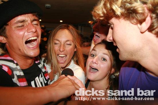 Sam / Sat 5 Sept 09..Mega fun night! Merci & Aurevoir a Seb, qui arrete de bosser au Dicks apres 5ans! Fanny G dance techtonic, Aurelia sings at a pitch that can only be heard by dogs & bats, Rachel S is always en forme! Caro (Joyeu Anniv!) & Sab dernier nuit..Thomas Twingo,Sylv & Mandina go crazy on the mic, the Santa Cruz Body Surfers are back in town...good times with the locals down in Dsb after la follie d'ete!!