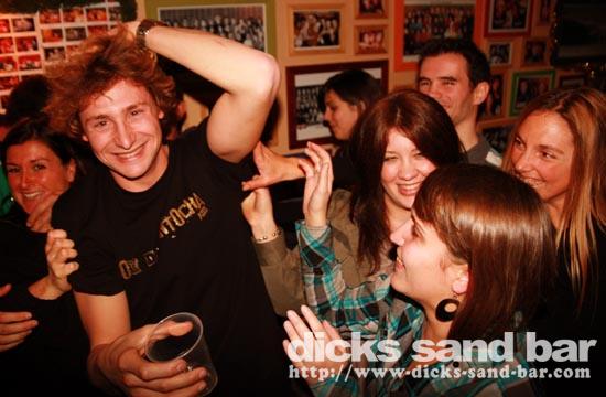 Sam / Sat 9 Janvier 2010...Neige sur la plage ce matin, mega froid mais quand meme sympa au bar ce soir, avec Capbreton Rugby qui a gagné, l'A.S.H en forme avec Jaja, Vic & Richard en tete de consumation (ils sont blessé donc ca va) Max Hugo Emilie (merci pour les photos!;) Laurence & the nice Finnish lady, Dan & his buddy got messed up AGAIN, Sylvain au micro bof mais quand meme enthusiaste mais Marine Sam Chic Aurelie Reignez etc au micro super fort! (mais cest juste une idee: arrivez avant 01H56) Bisous!