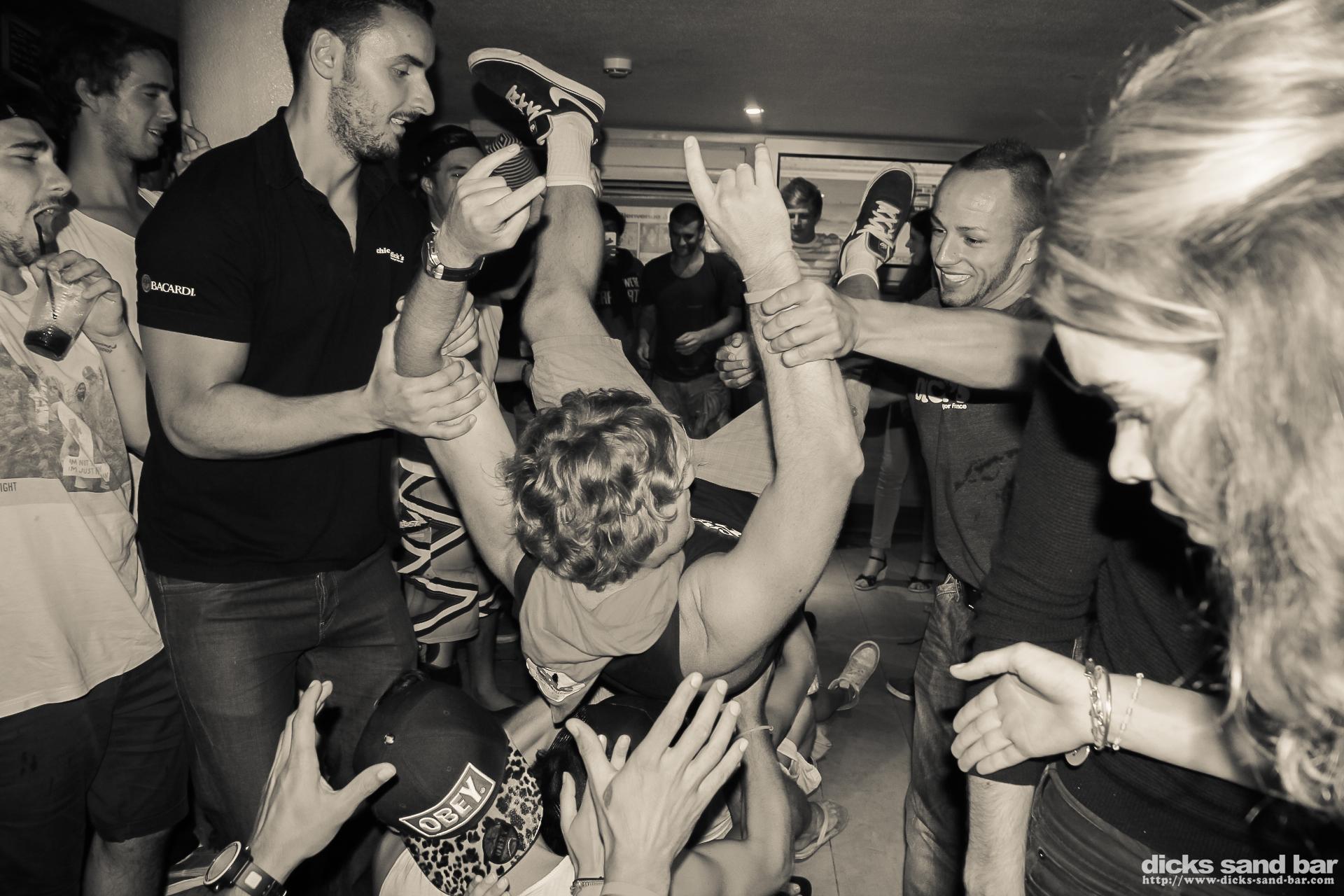 Dimanche / Sunday 18 August 2013...Mega apero avec les equipes Beach Volley de DsB, Etiquette & Les Penguoins du Lac avec Guillaume Gee en concert et Leo qui danse rock avec Xavier & Fab, Delphine Kdo & les beautiful Labenne people, then we did the WORLDS BIGGEST MACARENA, with Clem leading the thousands that were doing the thing, and Butterface was hustlin', Kate's birthday and it got messy with eth Princess girls (again), and we finished with a Paquito which was quite rude, then 16 & Lucie's ugly twins came in...photos: David Potter & Kene O // Contact: dave@dicks-sand-bar.com