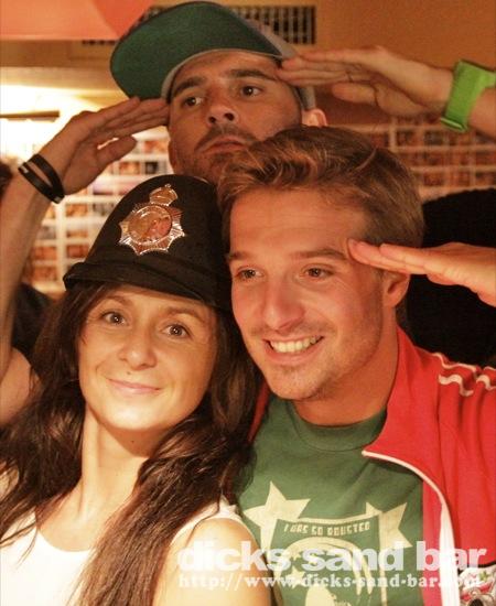 Dim / Sun 2 Sept 2012 Latino 3... Santa Cruz Bodysurfers Josh & Tom back in town and ready to get wet, Antoine anniversaire donc shakers sur les oreilles, Bibbin's Stag weekend continues Hossegor style with Mark Hiseman & the boys getting messy with big Jaque and his little buddy, Kats & Emi party with Momo dehors dans notre Bodeguitas Bar, Manon Margaux & Carla Clara look like Sandy at the end of Grease when they sing 'Youre the one that i want', Greg & Kris karaoke disaster, Jaja has a hairy ass, and Tomas had a bucket on his head to protect him from the incessant salsa music........photos: David, Kene, Romain // Contact: dave@dicks-sand-com