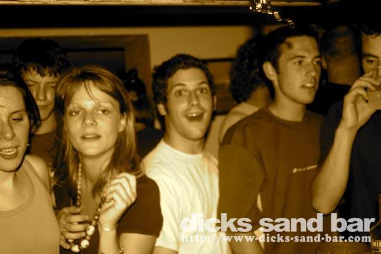 Vendredi / Friday 15 July 2005....Like salmon fighting their way up stream in an irresistable call of nature,so do the beautiful people of Hossegor strive to party in Dicks Sand Bar! (please feel free to email me new suggestions of things to write here!)