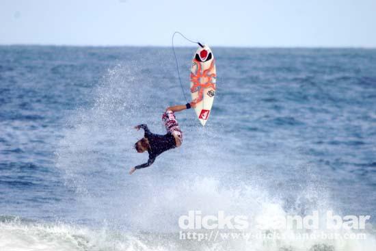 Heavy morning shorebreak, ridden by some of the pro crew