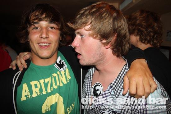 Friday / Vendredi 20 Aout 2010...Dragon Optics Party avec Antoine et Barbu du magazin ...Lost "South Central" a Soorts.....& comme prevu il y avais du monde!! En plus les jouers de Northampton Saints rugby squeezing into the bar. Wall to wall Dragon stickers stuck on boobs and bums & faces, tons of beautiful girls and some weird music all mixed up and a cracking party of sweaty people...check of the pics!