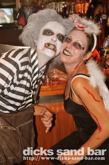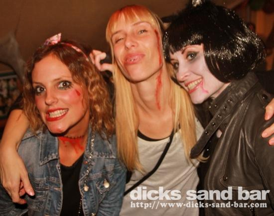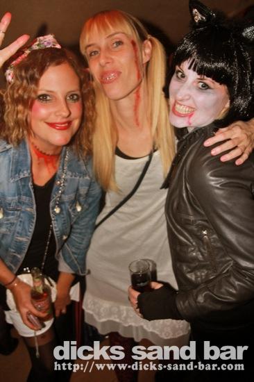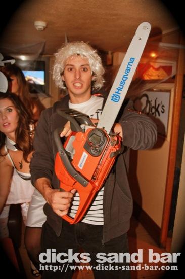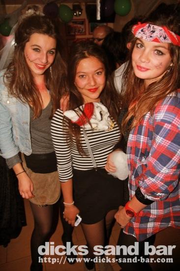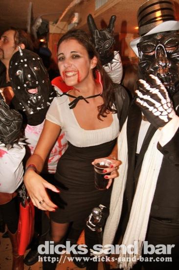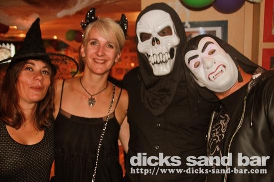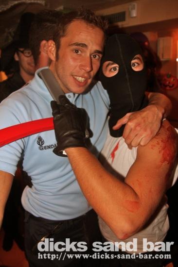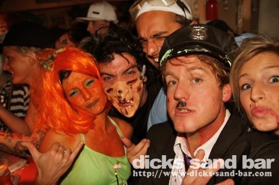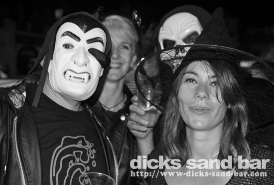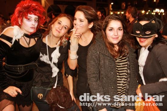 HALLOWEEN Lundi 31 Oct 2011....Chaque annee vous nous surprenez avec votre enthousiasme et vos costumes magnifiques! Encore une superbe soiree Halloween avec plein de gens qui faisaient trop peur! Ils sont venu de Montauban, Toulouse, Bordeaux, Paris pour lancer le feu avec les locaux....les sorcieres & diables partout, il y avait un psychopathe avec sa tronconeuse, Les Playboy bunnies avec Hugh Hefner, Remy & Sylvain etait tres intimes, Max Hugo et al Harry Potter style, Dick a tourné partout filmé et cette semaine Dan va vous faire une autre superbe video montage, Anniv Alex Belge qui faisait tres peur avec Jerome le Demon, Thierry & son frère se deguisaient ensemble pour la premier fois depuis on a ouvert le bar!Merci les gars!!! Caroline B & ses copines avec l'accent Montauban, Baptiste Tactique Gendarme, Amelie S - Melissa- Maud Danatia Marie Michael Jackson super mignonne phantoms, Vincent Ghostrider, Nick & Buckle looked good as usual with special mention going to Nicks devil makeup! MERCI ENCORE POUR VOS DEGUISEMENTS - TROP FORT BRAVO!!! ..photos: Dr Dan & Adolf Potter... // Contact: dave@dicks-sand-bar.com