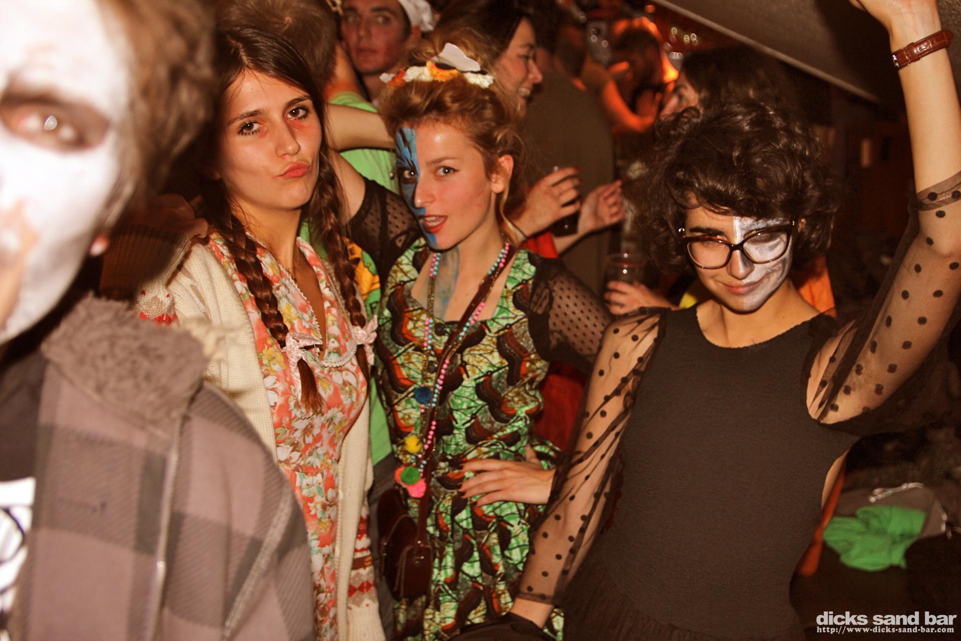 Jeudi / Thursday 31 Oct 2013 Halloween Pt 2....Bravo a tous pour les deguisements extremement choque!,Max Chris & Hugo Mami's Morte, Princess crew Exorcists plus Zumba Jesus, Justine Sexual & pretty Chloe avec Elodie & Lea bcoup shooters, Nick Pump annual visit, Anne Laure beautiful mais pas de costume, ...vous etes les grandes malades ....photos: David Potter & Dan the Diss// Contact: dave@dicks-sand-bar.com
