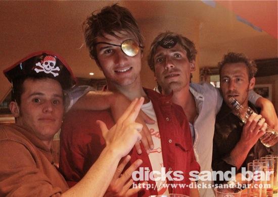 Jeudi Thurs 7 Juin 2012 PirATeS PaRTy!!!...Captain Jack Sparrows partout et les filles s'habilléé mega chic a le look Pirate! Crawshays Rugby Team (Pays Galle) pop in to say hello and scare the local chicks with their massive biceps. It was HardcORE; Melissa has a bust leg but Charlotte and their german girlfriend took good care of her, les Sisters Lauren & Chacha et ses copines ultra super pirate girls ..photos: David P Kene Dan Dys etc etc // Contact: dave@dicks-sand-com