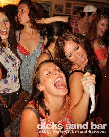 Lundi / Mon 20 August 2012...Dernier soir pour la star karaoke girl Flo, Clemence A et ses copines are back in town and bringing the party, Toulouse girls everywhere, (Justine Melody & Airiene?), mad Dirty dancing karaoke session at closing time!...photos: David, Kene, Romain // Contact: dave@dicks-sand-com