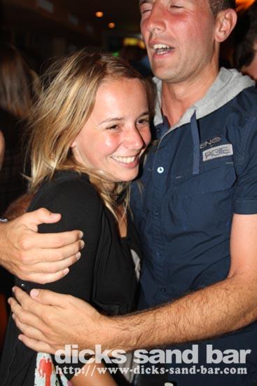 Mardi / Tues 3 Aout 2010... Laure & the "greek dance" girls are back and get things started, then Nico au micro singing Joe Le Taxi, again millions of "Toulousains" in the bar going crazy... pretty chicks everywhere, Fanny & les filles and Aurelias emotional goodbye (see you in 3 wks), cute tall Aussie chicks, Hugo & the boys shooter kings..... Dicks Sand Bar is now at full alert....Summer is well and truly on!