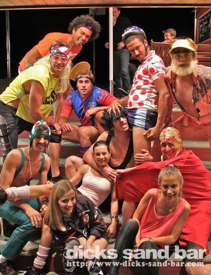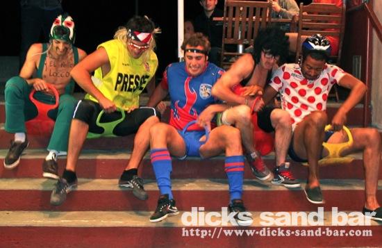 Merc Wed 13 Juin 2012 SpoRt nIgHt!..Soiree deguisee avec Bar Olympics..Luge au cul gagné par Kene Armstrong (hommes) et Stinson Toulouse (femmes), Catchers Mexican Wrestlers Reva El Tuer & Rudy Pollo Loco, Bapt Rugby, Romain Top 14 Presse, Tomas Steroid Man, Dp Swedish Skier, Dan Disco Skiman, Clem Black Swan, Margs & Manon Pomm Pomm chicks, some random dudes in bunny costumes, Rudy Rolland Garos, & les hippy girls are crazy ..photos: David P Kene Dan etc // Contact: dave@dicks-sand-com