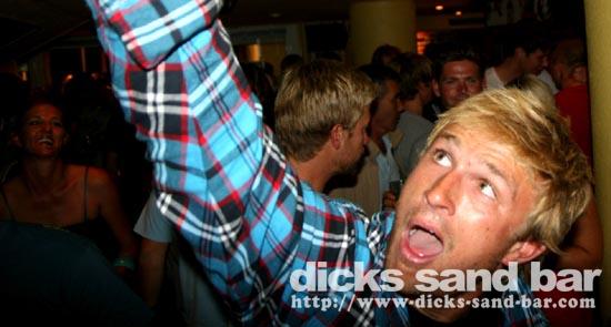 Mon / Lun 15 Sept 08..Beau temps et grosse vagues,puis soiree cool avec Americans,Germans,English,Swedish,Serbians & Irish mixing it up avec Les Francais!Cosmopolitain DsB style,with Rock Food team,Delphine au bar,Sophie & Amelie & Bakoua Team!