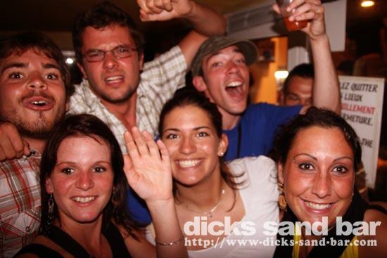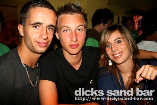 Lundi / Mon 4 Aug 08...Streuth!The busiest Monday night ever!Beautiful sunset,then wall to wall party on the square.Du monde partout et la folie au DsB...Clem & Christelle au shooters,et l'equipe de RipCurl eu feu!!!Mardi soir SUPERHERO PARTY!