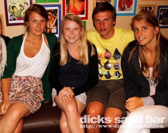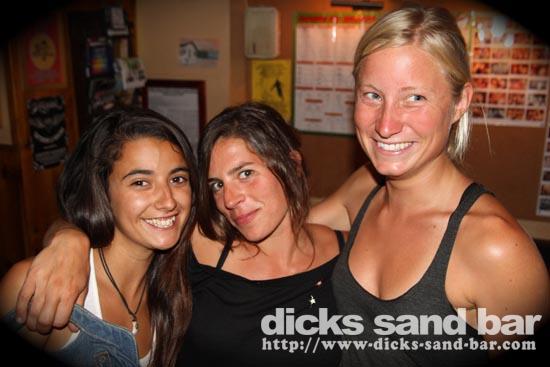 Aurore & Fany & the girls wanna be in a frame in the bar...a crew withGabe & Lauren from Cornwall flashed their knickers, it was a beautiful day with a light shower around midnight...just enough to water the flowers...and anticipation is high for tomorrow nights fancy dress Nerd/Geek party