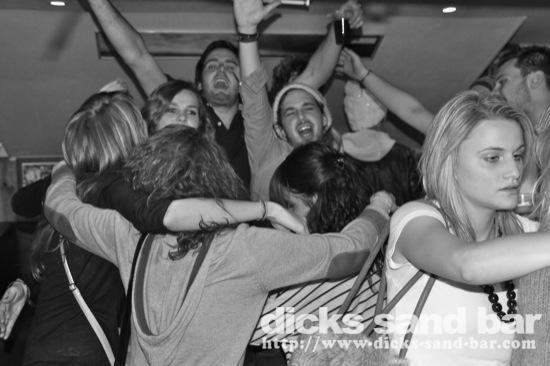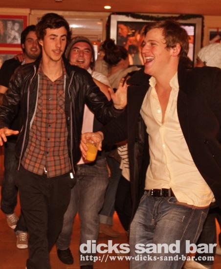 Sam / Sat 1 Jan 2011...les Toulousains go crazy pour leur dernier soiree a Hossegor jusqua Fevrier....les vrais fous!Aussi Bon Anniv a Julie qui a venu dancer avec ses copines au micro "besoin de rien envie de toi"...beaucoup des gens fatigué apres hier soir! Bon annee...see you next weekend!