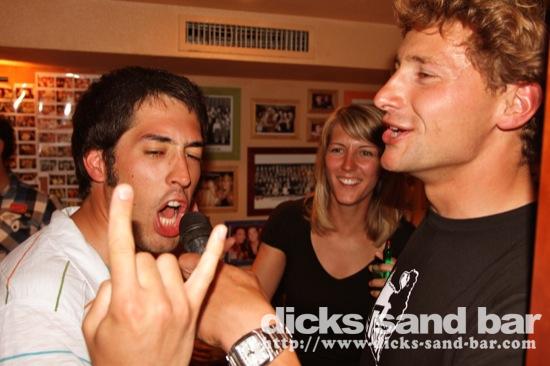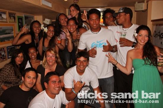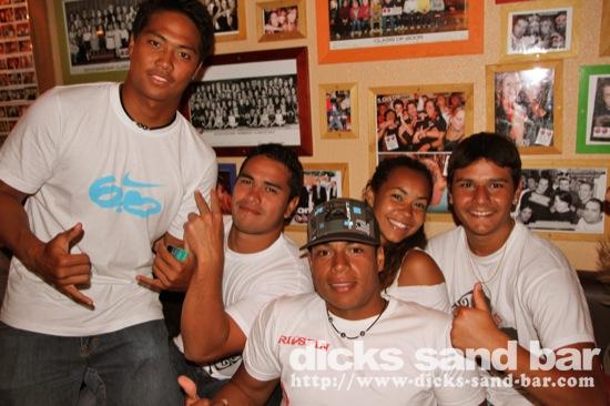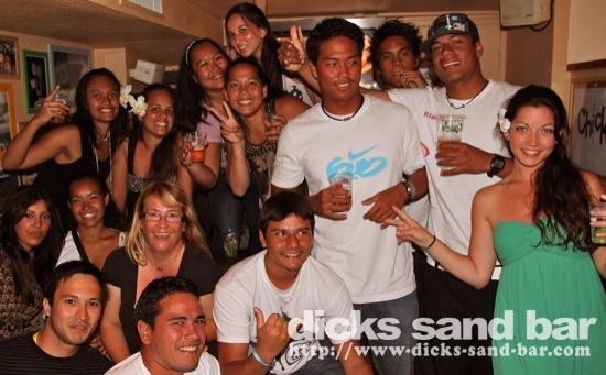 Sam / Sat 4 Juin 2011..... The marathon 4 day weekend continues with the busiest and sweatiest night of the summer so far....Guitar Henry playing live for the sunset, followed by Top14 final Montpellier & Toulouse, et les Toulousain sont content ce soir.....Sylv au micro, Sara freakshow hands, Celeste and her backing singers Will Survive, les filles du compete Swatch Hossegor et notre Champion de surf Alizee avec Laura Alex Camille & Alice (Gaelle tu nous manque), Raine looking swish, Francois princess RockFood. Les Tahitians en force et tres sympa aussi, madness on the dancefloor.....kick ass...