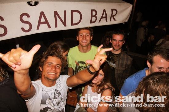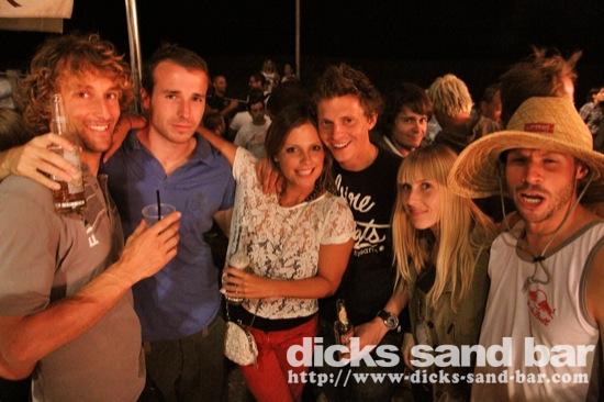 Samedi / Saturday 1 Oct 2011... Mega beau temps, puis mega soiree au bar, avec dernier soir a Hossegor pour Manu Martin (avant commencer a Toulouse) avec Max Lilian 'wanna gan to me fly' Bastos,Gaelle Jambes, Val Hugo Boss, Fred, anniv pour Laeticia (?) et les filles au micro completement folles, Roxanne & ses copines, Claire Buckle and her buddies and Nick sa cheri, Remy Thomas Twingo, Sylvain & Elodie, Rosé Girls (qui ne boir plus du rosé donc biere girls?),Pierro et son pote ourson, Estim Greg & son frere...merci a vous tous pour encore une super nuit d'oufff!! ....photos:Reva, Dan, David Potter... // Contact: dave@dicks-sand-bar.com