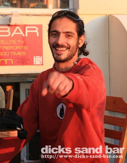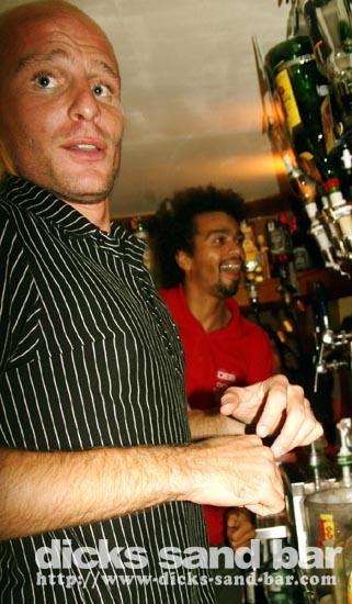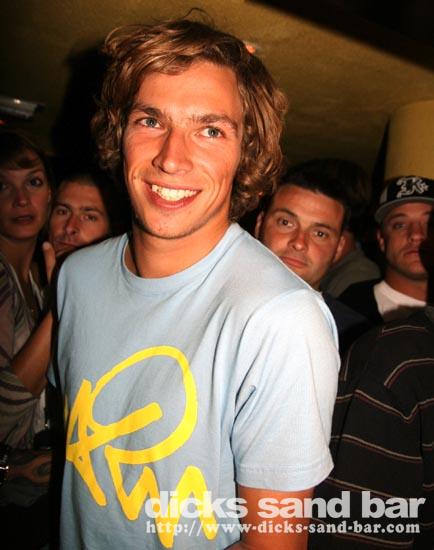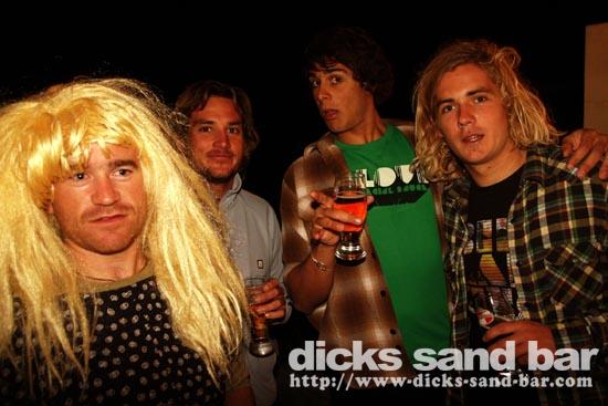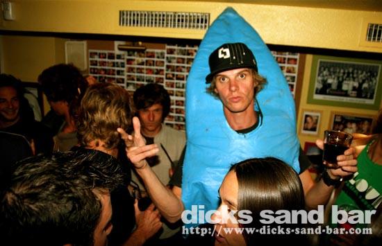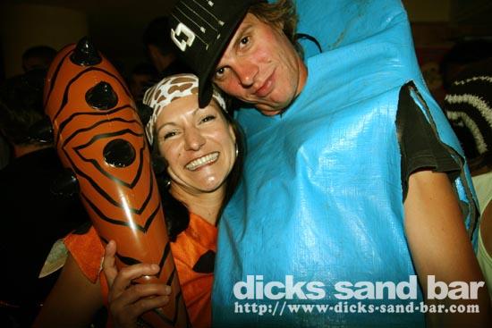 Sam/Sat 18 Oct 08..Beau temps et belles vagues.Laurie dressed as a surfboard?Why?Who cares!Jester Luke Short,Labenne Mexican,Swedish & German dudes,DJ Bert rockin the bar,Estim Pierre,James freestyle rappin,jolies filles plus bangin tunes=Dicks Sand Bar!